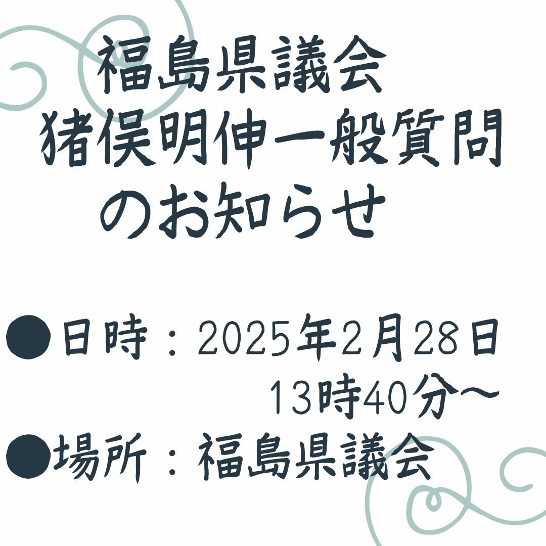 2025年2月28日(金)13:40から県議会で一般質問を行います。来られる方は下記までメールをいただければ幸いです。連絡お願いします! 猪俣明伸